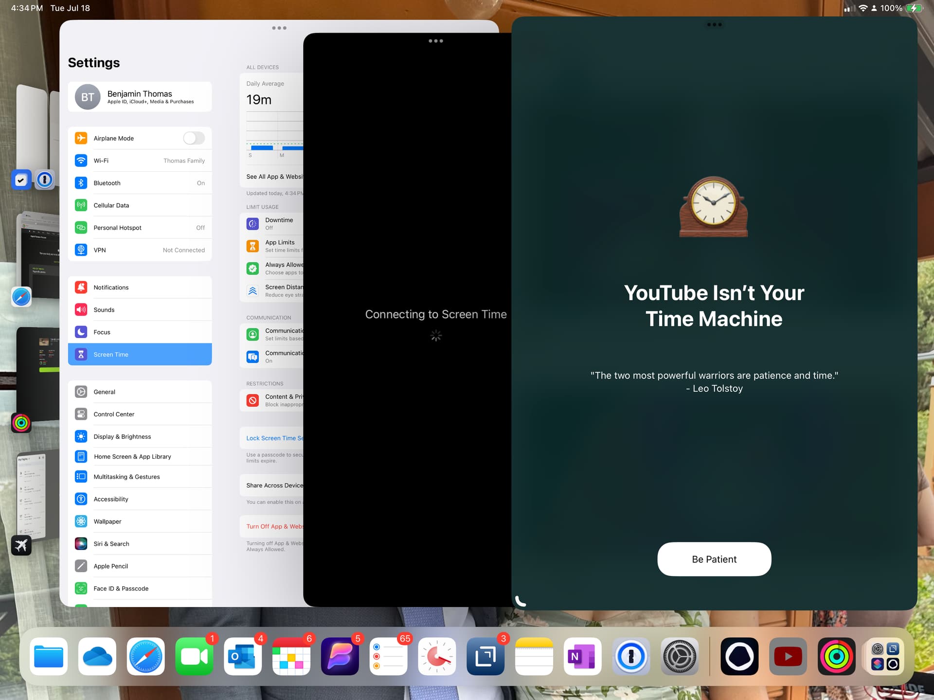 There is unfortunately an issue with iOS 17 beta right now where “Connecting to Screen Time” can hang on apple’s side - we’re working with them to find a solution. If you can rollback your iPad to iOS 16, this should also rectify the issue