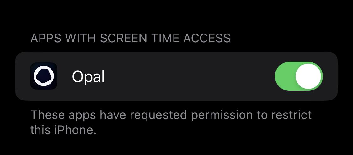 For me the best solution would be to use the ScreenTime passcode to enforce Opal, the same way itās already used to lock ScreenTime settings.