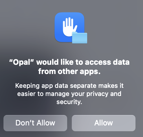 There is one annoyance though. Everytime I reopne the Mac app, I’m asked for the same permission seen below: