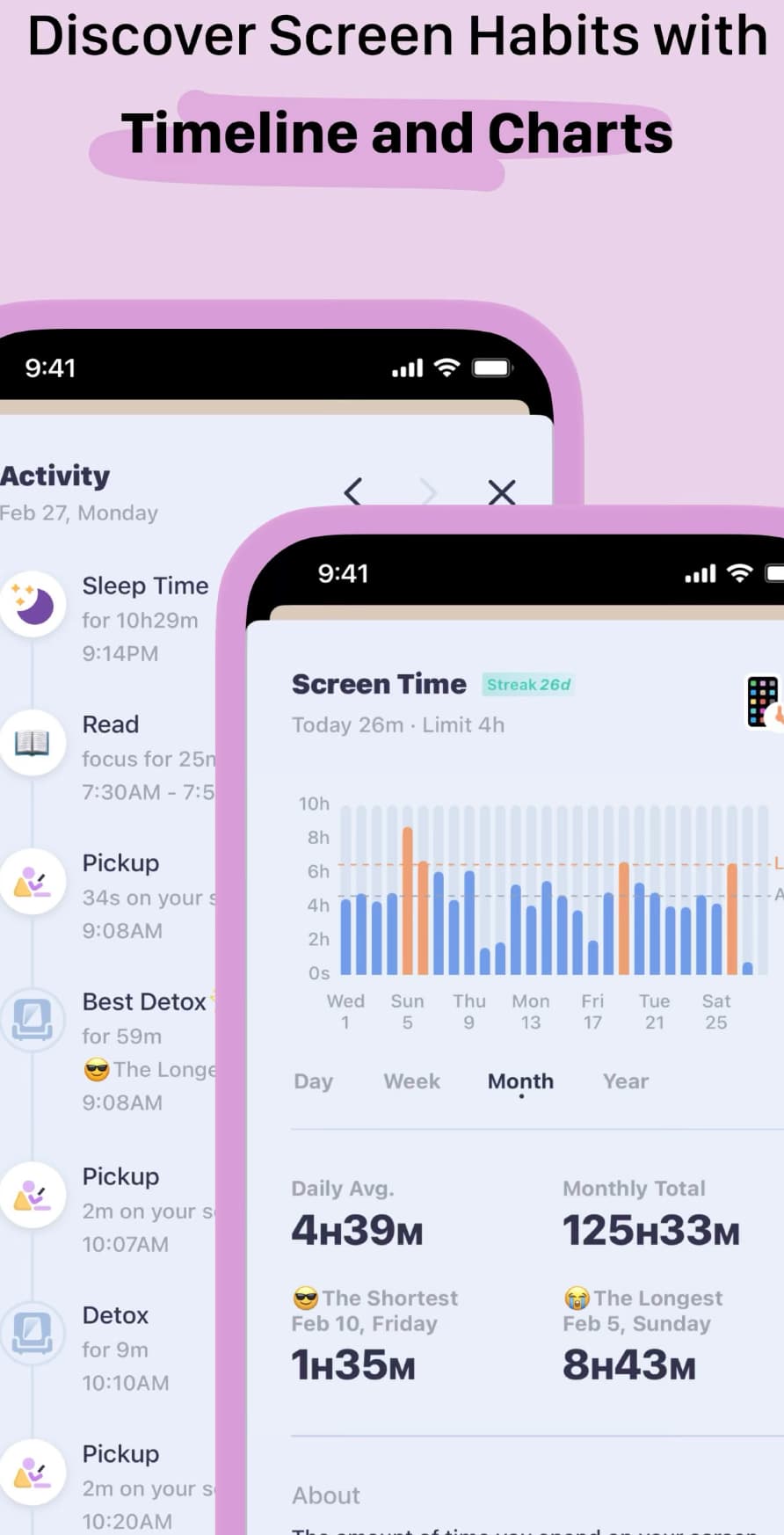 I’d like to see much more informative data that’s readily accessible - weekly insights, monthly insights, etc that carries over unlike Apple’s native Screentime stats that reset. Being able to get insights and change/improve through them is a large part of why I’m using Opal. Ex OffScreen app (attached a screenshot of some of their showcased timelines and charts)